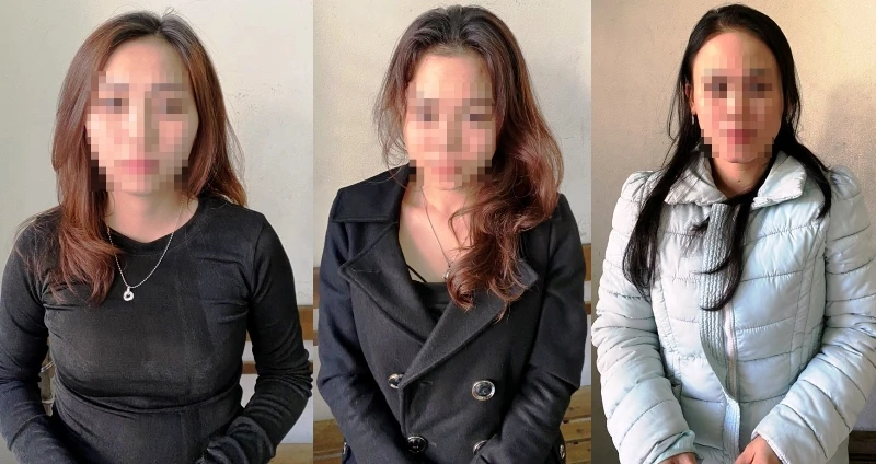 Ba cô gái bị tạm giữ vì mua ma túy thuê biệt thự sử dụng ma túy. Ảnh: CA