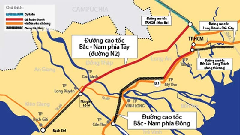 | Các dự án hoàn thành, người dân các tỉnh như Kiên Giang, An Giang, Đồng Tháp… đi lên TP.HCM sẽ thuận tiện và rút ngắn quãng đường và thời gian hơn trước đây. Đơn cử từ Đồng Tháp đi TP.HCM theo tuyến N2 rút ngắn khoảng cách được khoảng 20 km. |