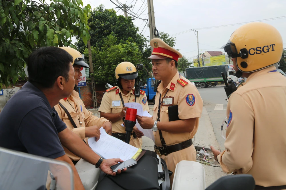 Lực lượng cảnh sát giao thông xử phạt một trường hợp vi phạm