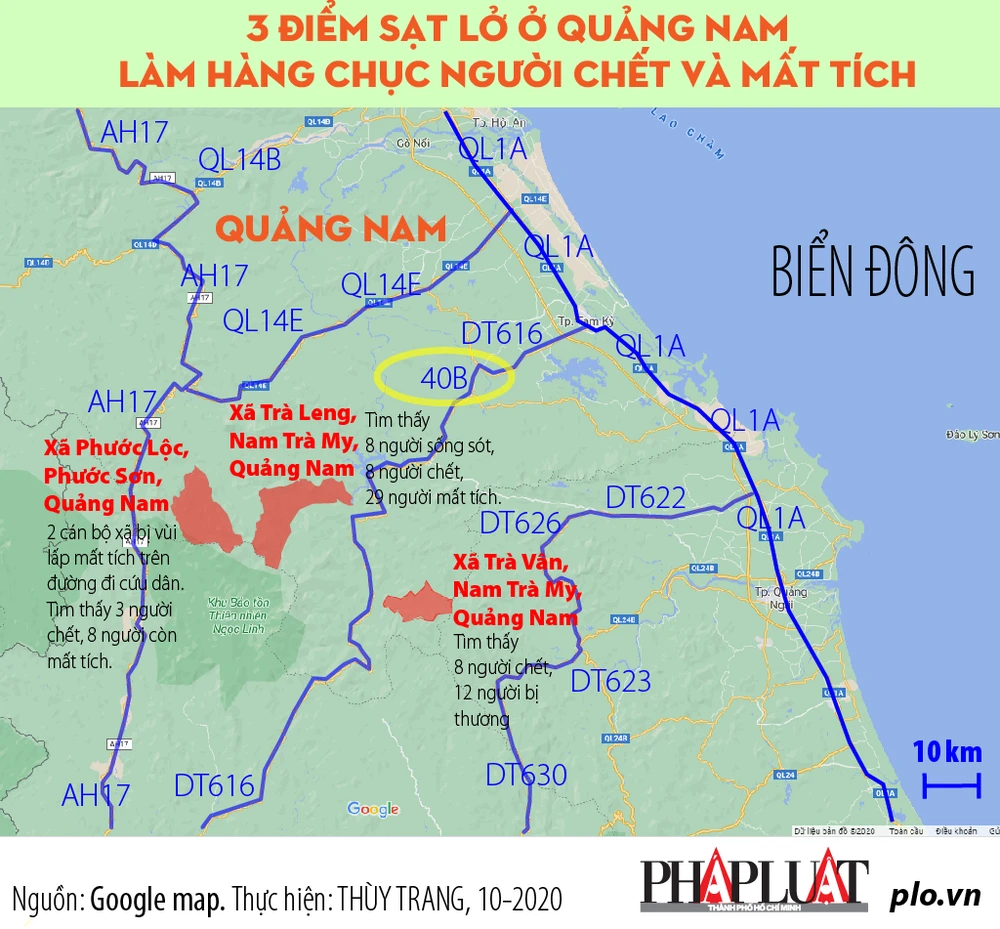 (PLO) - Cùng với việc bị bão số 9 càn quét, tại Quảng Nam, 3 vụ sạt lở đã diễn ra làm hàng chục người dân ở huyện Nam Trà My và Phước Sơn bị vùi lấp. Rất nhiều người trong số này bị tử vong, đã tìm được thi thể. Số còn lại đang bị mất tích. Hiện các lực lượng cứu nạn đang tìm cách tiếp cận hiện trường, nhưng gặp nhiều khó khăn.