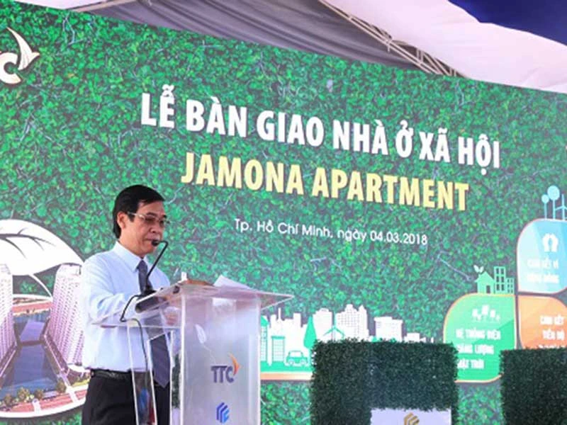 Ông Nguyễn Văn Danh, Phó Giám đốc Sở Xây dựng TP. HCM, phát biểu tại buổi lễ bàn giao hơn 1.000 căn nhà ở xã hội thuộc dự án Jamona Apartment ở quận 7. Ảnh: TTC Land