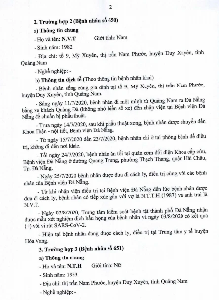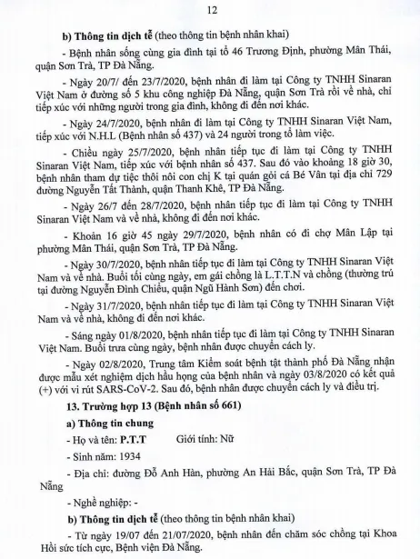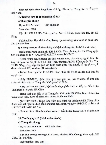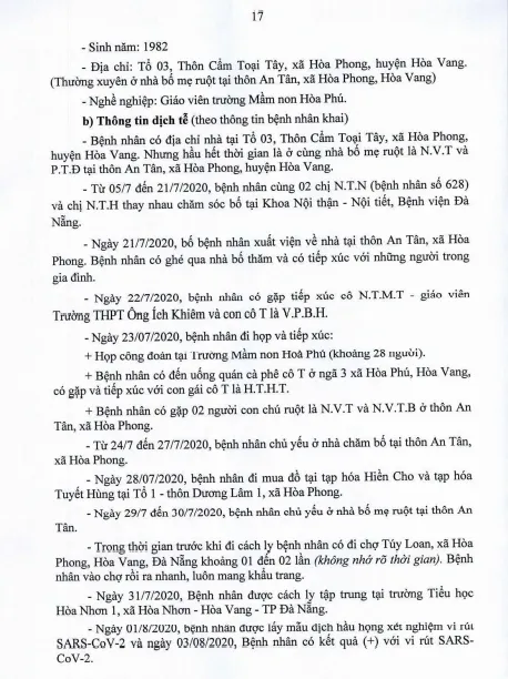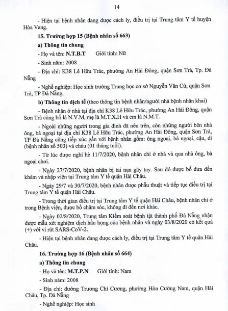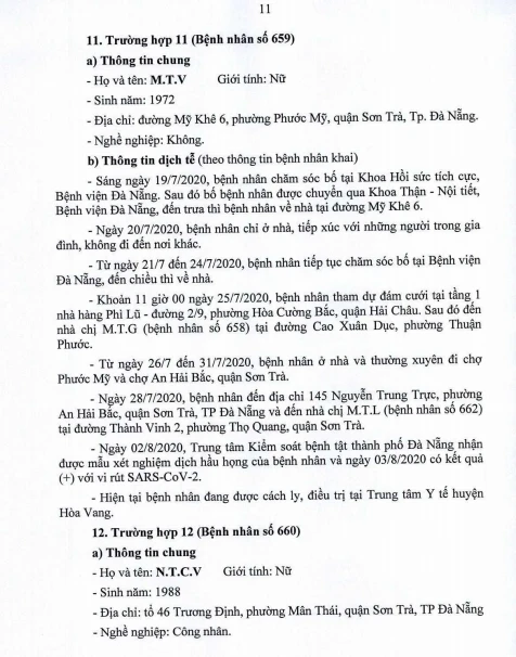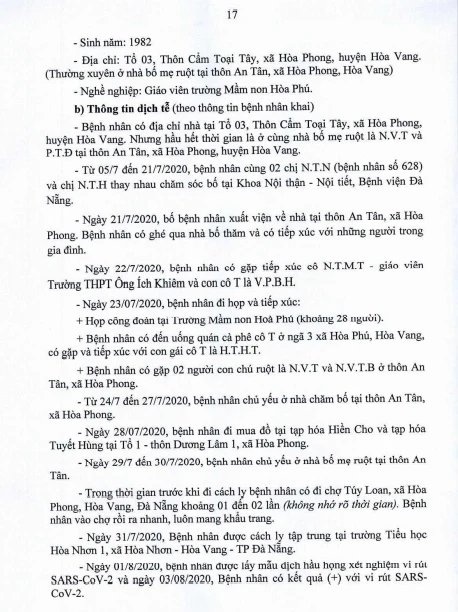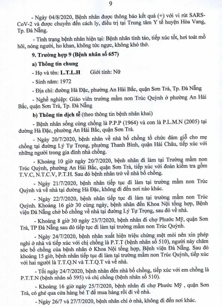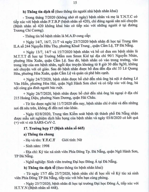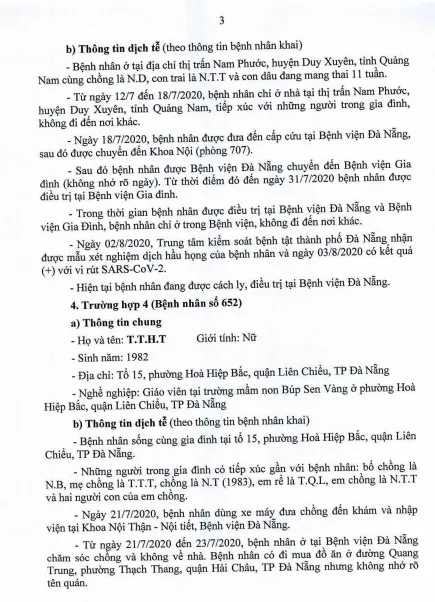 Cụ thể, Bệnh nhân 652 là giáo viên Trường Mầm non Búp Sen Vàng, phường Hoà Hiệp Bắc, quận Liên Chiểu, Đà Nẵng. Bệnh nhân 657 là giáo viên Trường Mầm non Trúc Quỳnh, phường An Hải Bắc, quận Sơn Trà, Đà Nẵng. Bệnh nhân 667 là giáo viên Trường Mầm non Hòa Phú. Các bệnh nhân có đến trường trong thời gian gần đây.