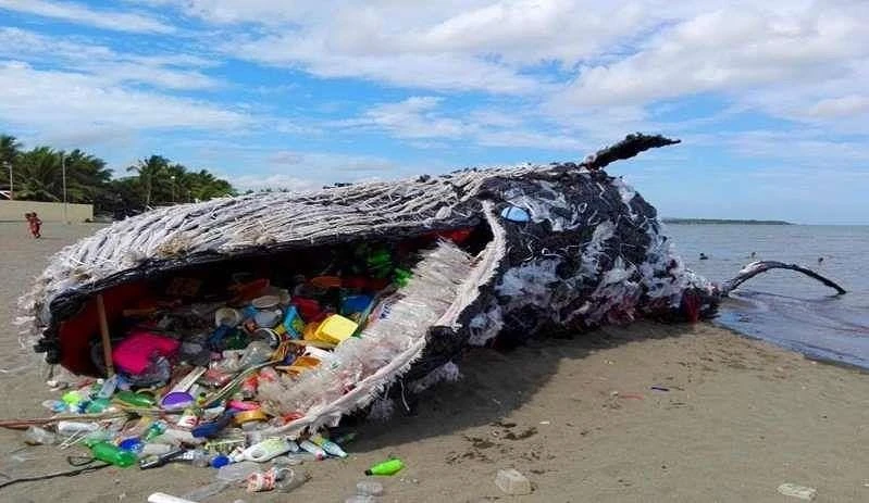 Một coi cá voi chết vì 40 kg rác thải nhựa trong bụng trên bờ biển Philippines. Ảnh: The Guardian