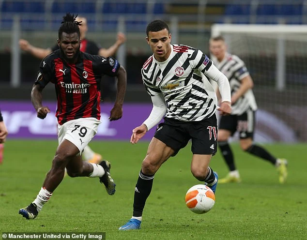 Mason Greenwood trong trận đấu với AC Milan ở Europa League. ẢNH: GETTY