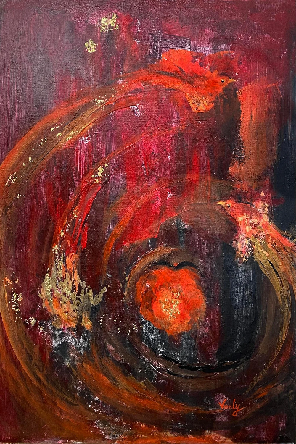 Hoạ sĩ Việt Kim Quyên mang đến triển lãm tranh vẽ hoa phượng tím, bằng chất liệu acrylic. Đây là loài hoa nữ hoạ sĩ yêu thích. Những bức tranh ra đời lấy cảm hứng từ chuyến đi Đà Lạt cùng gia đình, đúng vào mùa hoa phượng tím bung nở.
