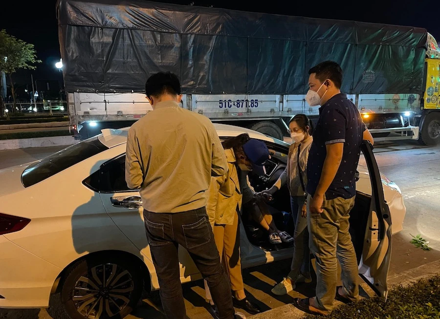 Công an dừng kiểm tra xe ô tô, bắt quả tang Ngô Thị Tố Anh mang theo thuốc lắc. Ảnh: CA