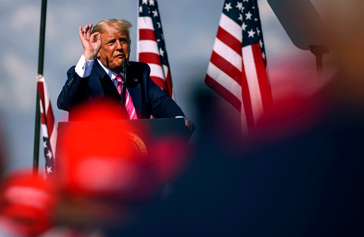 Tổng thống Donald Trump trong một cuộc vận động tranh cử ở bang Maine (Mỹ) ngày 26-10. Ảnh: REUTERS