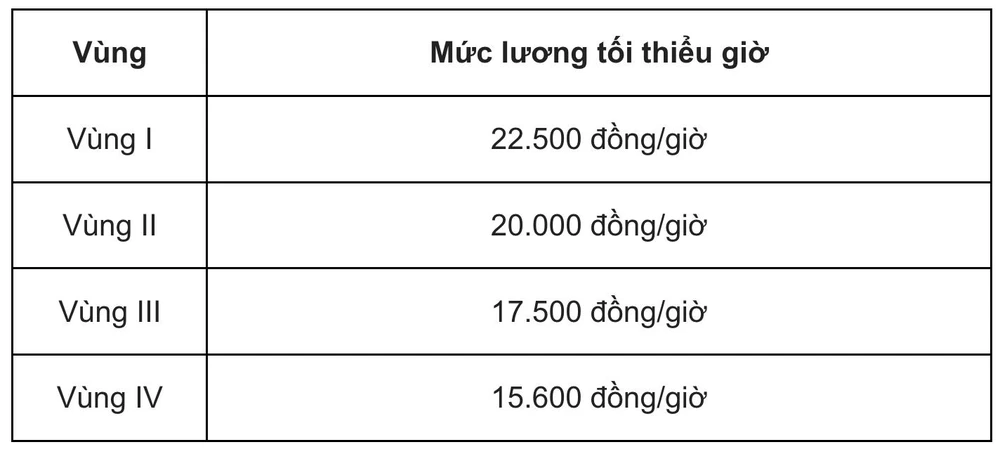 Mức lương tối thiểu giờ áp dụng từ ngày 1-7 như sau: