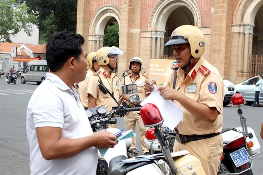 CSGT đang làm nhiệm vụ. Ảnh: H.KIM