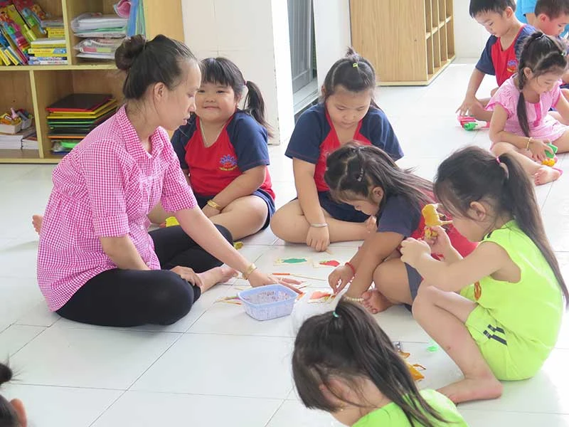 Một giờ học của cô trò tại Trường Mầm non Pou Chen, quận Bình Tân (TP.HCM). Ảnh: PA