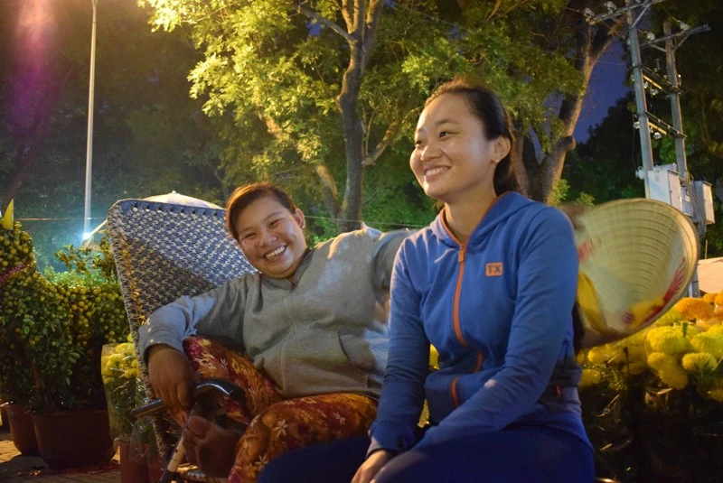 Bà Võ Thị Hiền Lương cùng con gái đi mua hoa chưng tết
