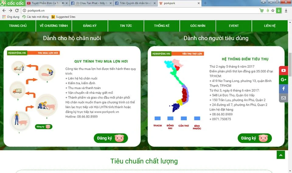 Trang thông tin chính thức của chương trình có tên là porkpork.vn cung cấp đầy đủ thông tin cho người dân về giá cả, thị trường thịt heo... Ảnh: THANH TUYỀN