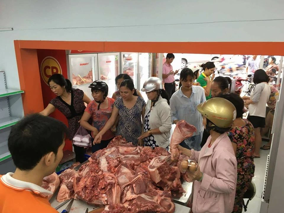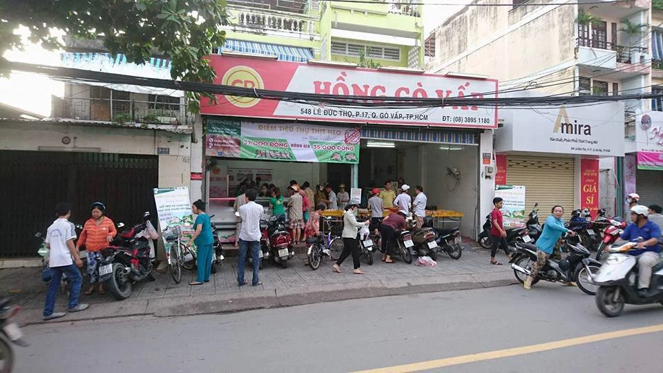 Dù chỉ mới 6 giờ sáng nhưng đã có rất đông người kéo đến cửa hàng ở địa chỉ 419 Nơ Trang Long, quận Bình Thạnh, TP.HCM để mua thịt heo giá rẻ. Đây là điểm bán thịt heo hỗ trợ người chăn nuôi đang gặp khó khăn của chương trình “Hỗ trợ hộ chăn nuôi - Trợ giá người tiêu dùng”. Theo đó, nếu người mua mua góc 1/4 con heo trở lên sẽ được mua với giá 35.000 đồng/kg; mua 3-5 kg là 37.000 đồng/kg.