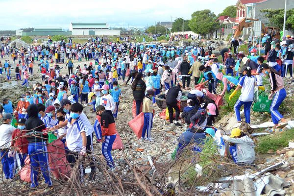Sáng 19-12, tại Cảng cá Mỹ Tân, xã Thanh Hải sau buổi lễ ra quân thực hiện “Ninh Hải- Hành động vì môi trường”, hàng ngàn tình nguyện viên và nhân dân trên địa bàn đồng loạt ra quân triển khai thu gom rác thải, vệ sinh môi trường tại 42 điểm tại các xã, thị trấn trên địa bàn toàn huyện.