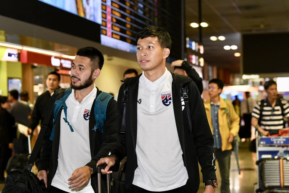 Ba cầu thủ Thái Lan chơi lại J- League 1 gồm Chanathip (Consodole Sapporo), Dangda (Hiroshima Sanfrecce) và Bunmathan (Vissel Kobe) tập trung tại Nhật và lên cùng chuyến bay về sân bay Dong Muang của Thái Lan. Họ hội quân cùng đội tuyển Thái Lan vừa từ Hong Kong về nước.
