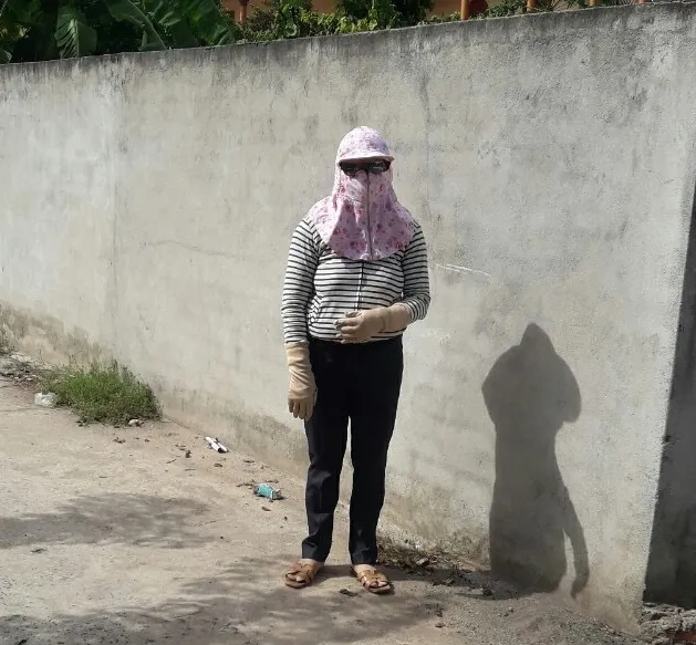 Chị P. có thể che chắn và làm việc trong điều kiện ánh nắng ban ngày sau khi điều trị. Ảnh: BVCC