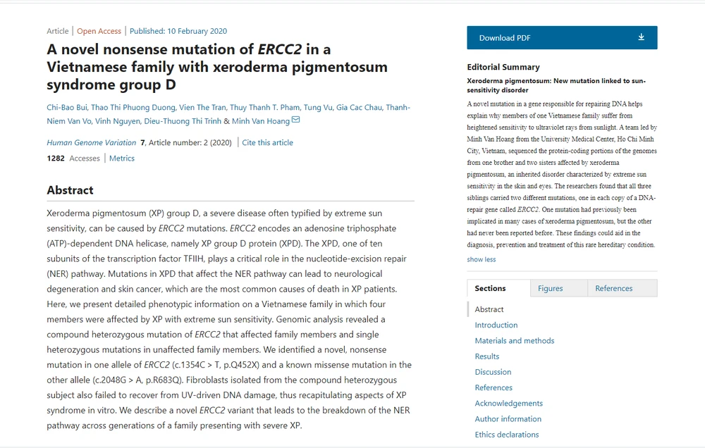 Tạp chí Khoa học danh tiếng Nature - Human Genome Variation đăng tải nội dung nghiên cứu. Ảnh: BVCC