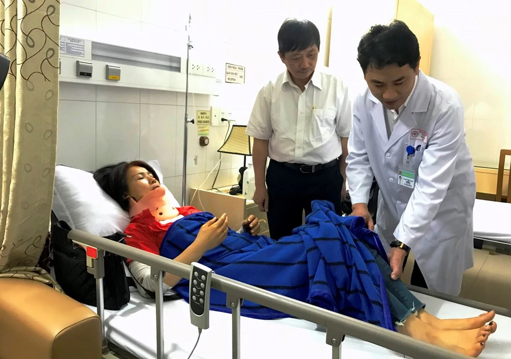 Trong số những người phải nằm lại có một nữ bệnh nhân 40 tuổi bị nứt sọ trán trái, tụ máu dướii màng cứng trái, xuất huyết màng não thái dương và chấn thương ngực kín. Các bác sĩ được huy động và mổ ngay sau đó nên bệnh nhân đã tạm ổn và đang tiếp tục theo dõi. Ngoài ra, có hai nạn nhân bị chấn thương hàm mặt, vai trái và phần mềm cột sống cổ đang điều trị tại khoa Quốc tế.