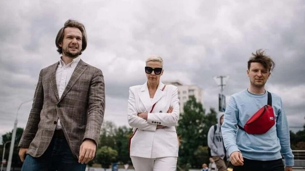 Ông Anton Rodnenkov, bà Maria Kolesnikova và ông Ivan Kravtsov (theo thứ tự từ phải sang trái). Ảnh: GOMEL NOVOSTI/FACEBOOK