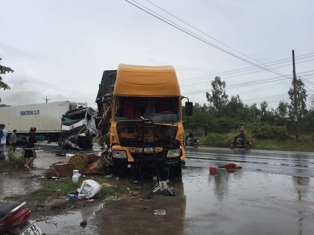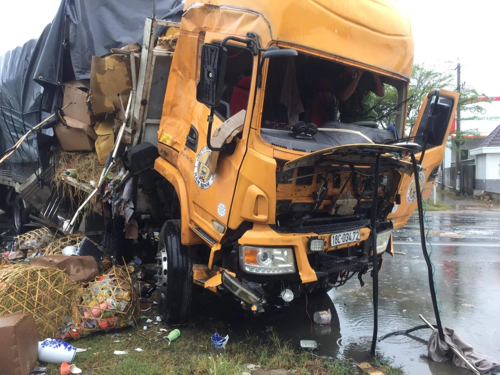 Trưa 27-12, trên quốc lộ 1A đoạn qua xã Hàm Cường, huyện Hàm Thuận Nam, Bình Thuận, xe tải đầu kéo 18C-034.72 do tài xế Nguyễn Phúc An (SN 1956, ngụ Ninh Bình) chạy hướng Bắc-Nam thì bất ngờ lao qua làn đường ngược lại, tông trực diện vào xe container 77C-080.40 chạy chiều ngược lại.
