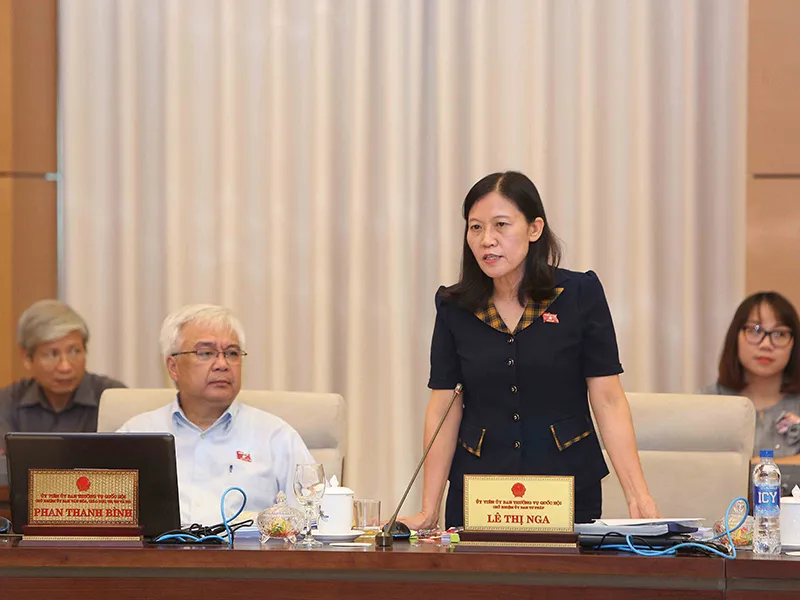 Chủ nhiệm Ủy ban Tư pháp của Quốc hội Lê Thị Nga trình bày báo cáo. Ảnh: TTXVN