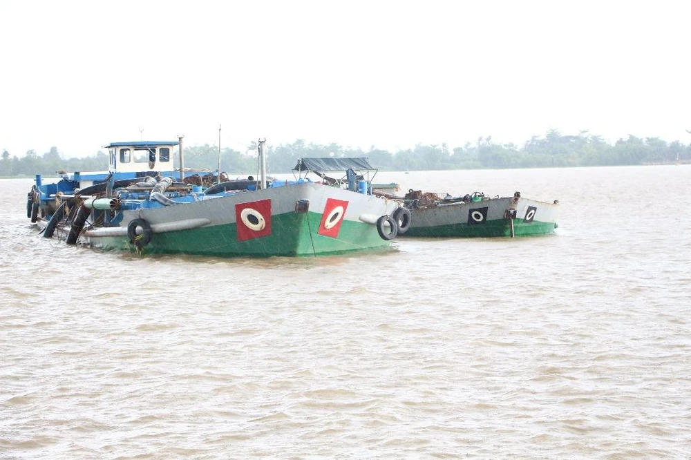 Sà lan sử dụng máy bom hút công suất lớn để khai thác cát trái phép