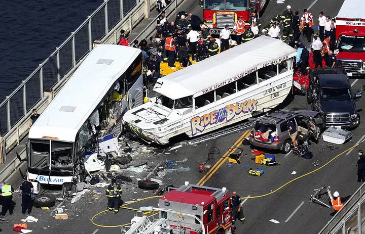 Các nhân chứng cho biết chiếc xe du lịch hãng Ride the Ducks đang tiến về hướng bắc cây cầu rồi đột ngột lách mạnh sang bên trái, rồi va chạm với một trong hai chiếc xe bus chở học sinh. Hành khách trong xe toán loạn mở cửa xe thoát thân giữa các mảnh vỡ nằm ngổn ngang. Một nhóm các nhà điều tra từ Ban An toàn Giao thông Quốc gia ngày 25-9 đến Seattle để làm rõ vụ tai nạn.