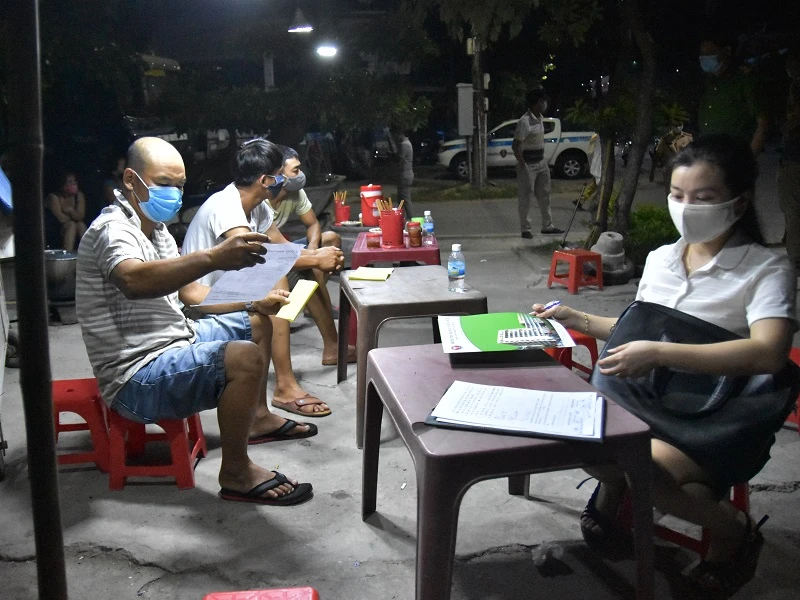 Lực lượng chức năng tiến hành đưa ba tài xế đi cách ly trong đêm. Ảnh: NGUYỄN DO