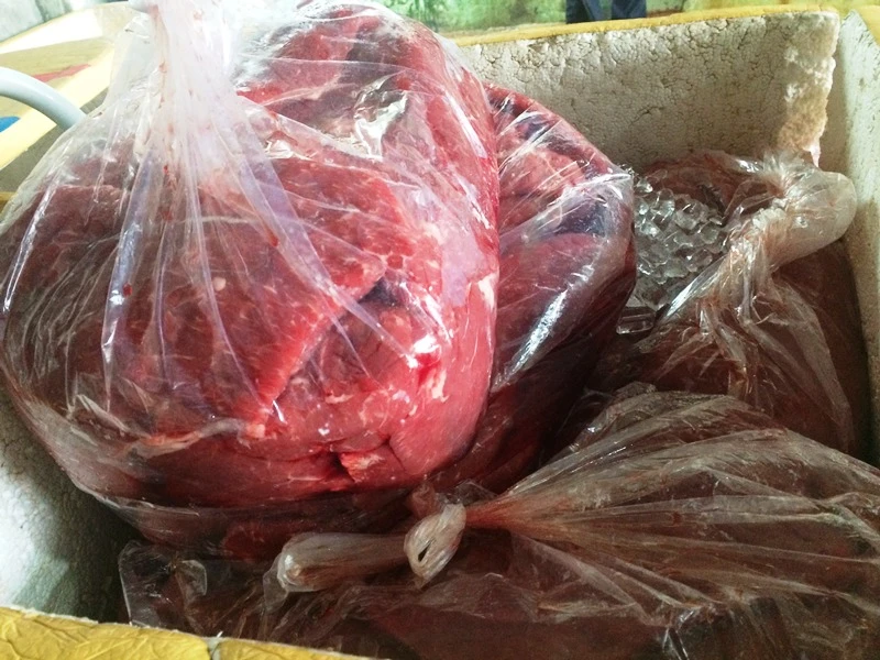 Thịt trâu Ấn Độ được đóng thành kiện, đông đá.