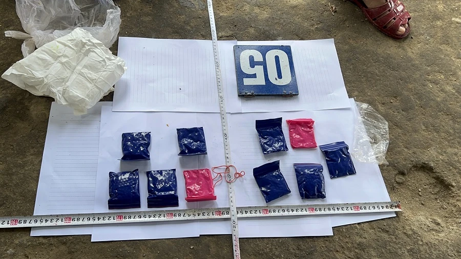 Công an huyện A Lưới đã phối hợp với VKSND huyện tiến hành kiểm tra 1.987 viên nén màu hồng và màu xanh, nghi là ma túy được cất giấu trong nhiều bọc ni lông khác nhau.