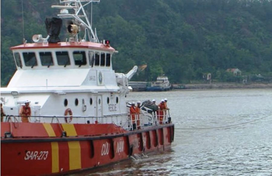 Tàu cứu nạn hàng hải SAR 411 đã vượt sóng gió, thời tiết khắc nghiệt, ngay sau khi đến hiện trường đã triển khai ngay công tác tìm kiếm sà lan QN 8359 cùng ba thuyền viền.