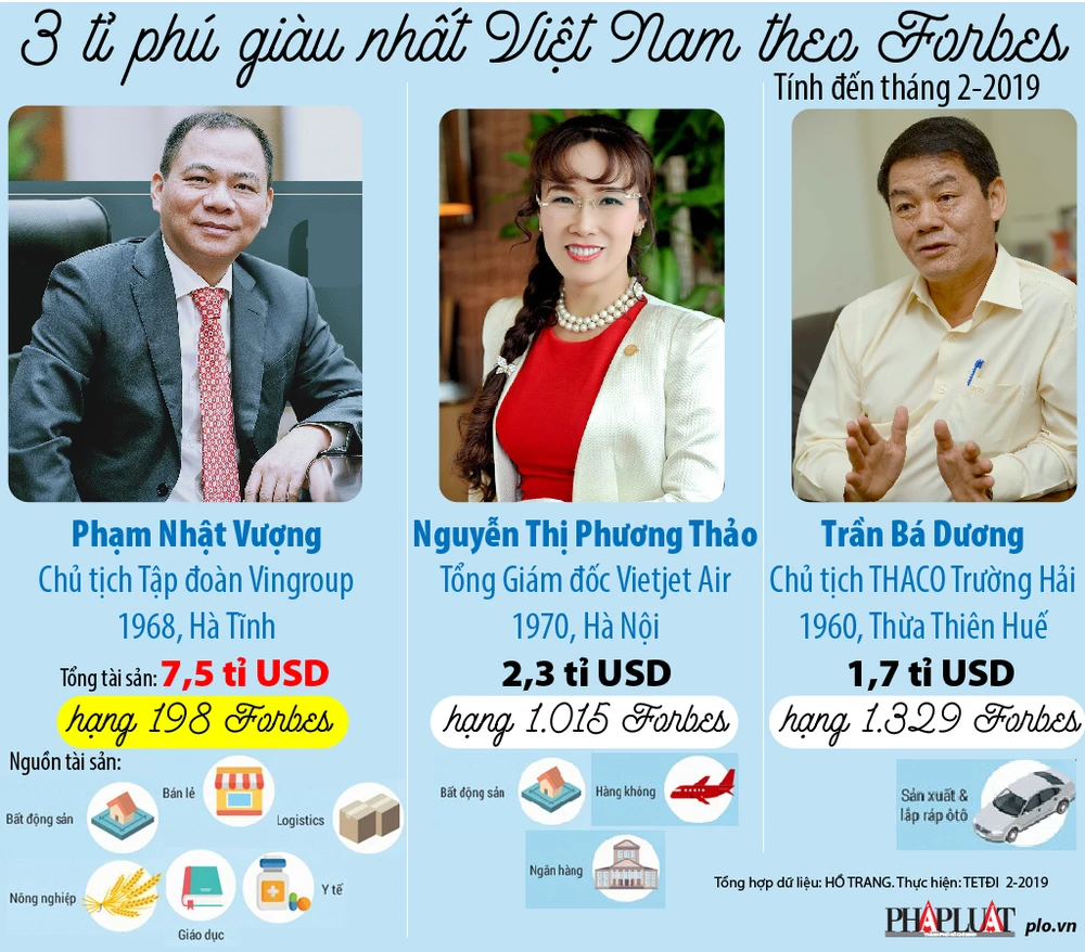 3 tỉ phú đô la giàu nhất Việt Nam có trong danh sách Forbes