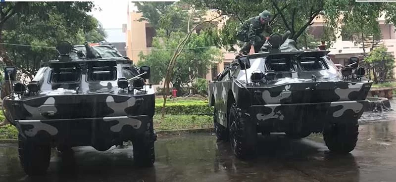 Xe bọc thép BRDM-2 sẵn sàng ứng cứu khi xảy ra sự cố bão, lũ. Ảnh: H.HIẾU