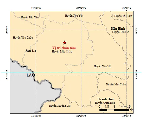 Chiều 27-7, TS Nguyễn Xuân Anh, Viện trưởng Viện Vật lý địa cầu, cho biết tại khu vực huyện Mộc Châu, tỉnh Sơn La lại xảy ra một trận động đất.