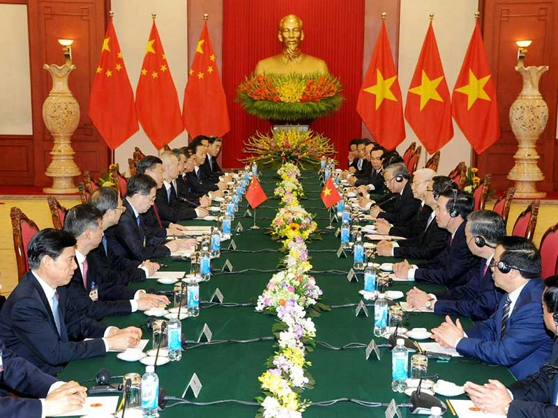 Chủ tịch Trung Quốc Tập Cận Bình cho rằng hai bên cần nhìn nhận quan hệ Trung-Việt từ tầm cao chiến lược và tầm nhìn lâu dài, thúc đẩy quan hệ Trung-Việt phát triển ổn định, lành mạnh, bền vững, đem lại lợi ích thiết thực cho nhân dân hai nước, đóng góp cho hòa bình, phát triển và phồn vinh của khu vực.