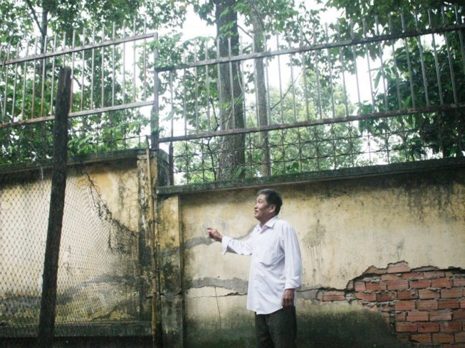 Bức tường rào cao mà kẻ trộm trèo qua để trộm. Ảnh: VH