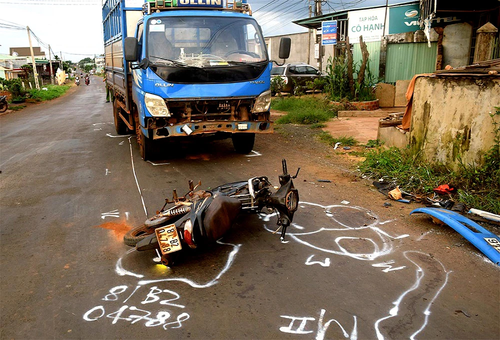 Lúc này, Đinh Tu (huyện Đak Pơ) đi xe máy 98L7-4587 chở theo Đinh Phên tông vào phía sau xe đầu kéo. Đinh Tu chết tại chỗ, Đinh Phên bị thương. Nguyên nhân ban đầu được xác định là do người điều khiển xe máy không chú ý quan sát dẫn đến tai nạn.