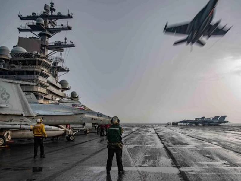 Máy bay F/A-18E Super Hornet bay qua boong tàu sân bay USS Ronald Reagan ở Biển Đông ngày 4-7. Ảnh: US NAVY/CNN