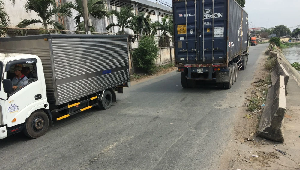 Điểm giao cắt nơi ngã ba này có mật độ xe tải nặng, xe container lưu thông dày đặc và các dòng xe ra vào luôn cắt mặt nhau tạo nguy hiểm, nguy cơ tai nạn cao.
