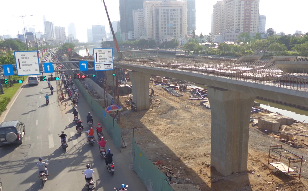 Toàn bộ trụ, mặt cầu của nhánh rẽ N2 đã hiện hình, chạy song song với đại lộ Võ Văn Kiệt.