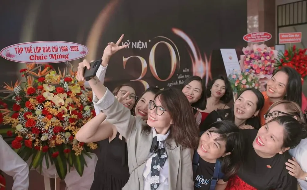 "Ba mươi năm đã trôi qua kể từ khi lớp báo chí đầu tiên được khai giảng tại giảng đường D - cũng chính là vị trí mà chúng ta đang ngồi đây, nhưng ở tầng trệt, khi tòa nhà này chưa xây. Ba mươi năm sau, được đón tiếp và gặp gỡ thầy cô ở đây, trong lễ kỉ niệm này, nhìn lại lịch sử, chúng tôi nhìn thấy mình trong hành trình của những người đi trước" - cô Triệu Thanh Lê (Trưởng khoa Báo chí - Truyền thông) chia sẻ đầy xúc động tại buổi lễ kỷ niệm.