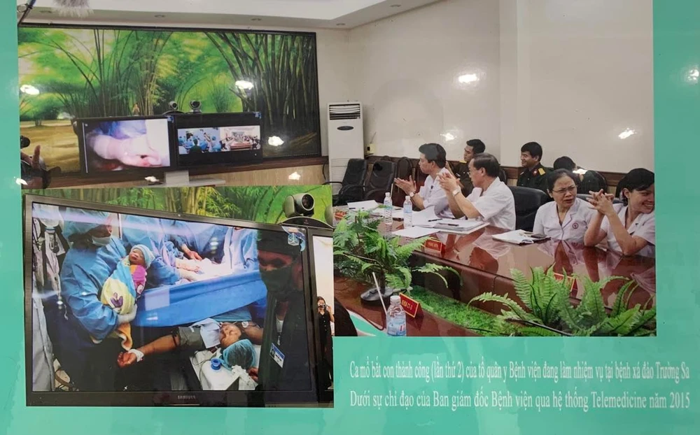 Ca mổ bắt con thành công lần thứ 2 của tổ quân y Bệnh viện 175 đang thực hiện nhiệm vụ tại Bệnh xá Đảo Trường Sa dưới sự chỉ đạo của Ban giam đốc bệnh viện qua hệ thống Telemedicine năm 2015. Ảnh: HOÀNG LAN
