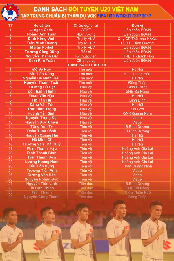 Danh sách đội dự tuyển U-20 Việt Nam. Ảnh: VFF