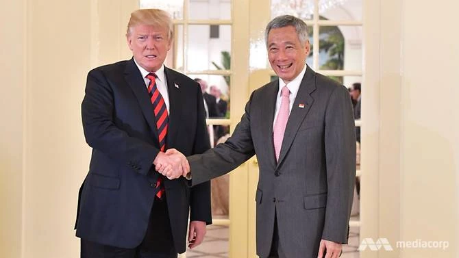 Ông Trump và Thủ tướng Singapore Lý Hiển Long (phải) gặp nhau tại Istana. Ảnh: CNA