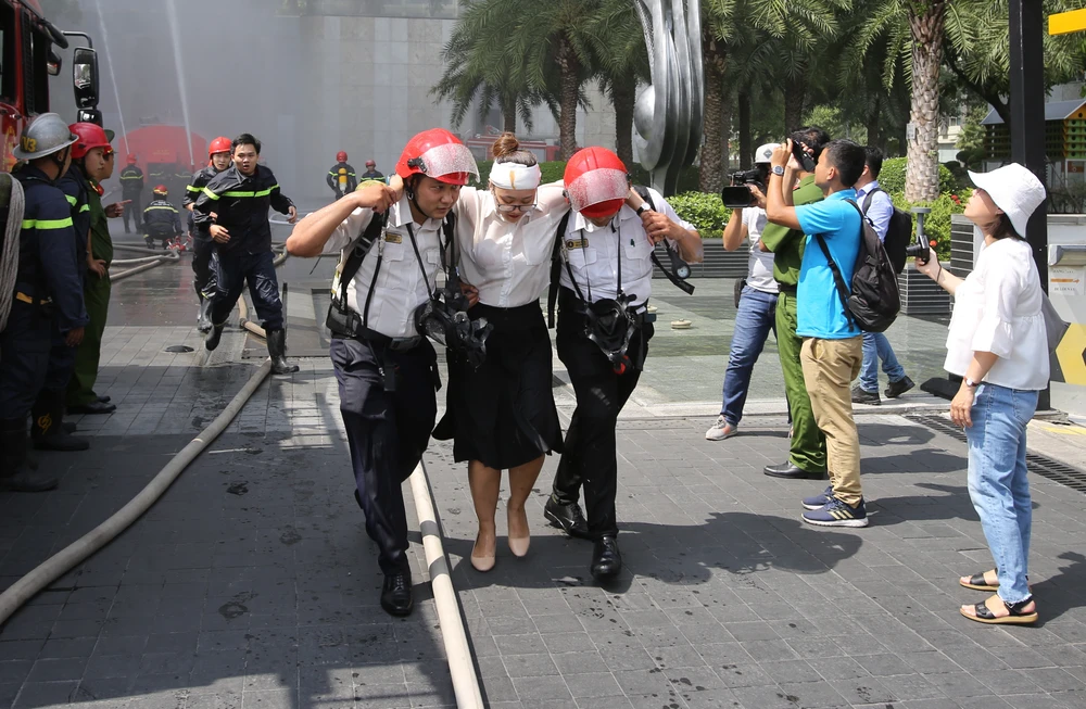 Theo đó, trong sáng 24-10, Phòng Cảnh sát PCCC TP.HCM đã phối hợp cùng ban quản lý tòa nhà phức hợp cao nhất Việt Nam đã tổ chức diễn tập PCCC - cứu nạn cứu hộ (CNCH) quy mô cấp thành phố tại tòa nhà Landmark 81 (quận Bình Thạnh, TP.HCM).