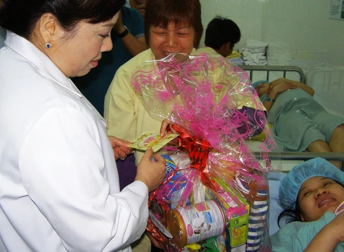 Bộ trưởng Bộ Y tế tặng quà cho sản phụ