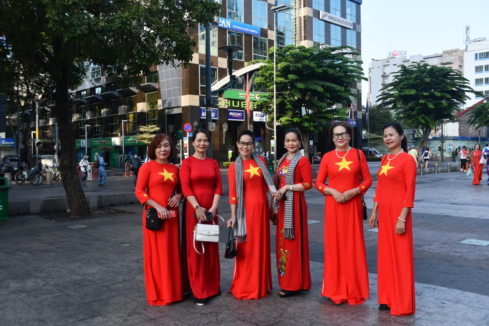Lãnh đạo TP.HCM tham gia diễu hành tại Phố đi bộ Nguyễn Huệ (quận 1). |
