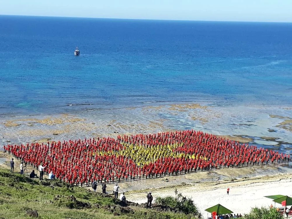 Sự kiện diễn ra tại bãi biển Hang Câu (đảo Lý Sơn), khi 3.000 người cùng mặc hai sắc áo đỏ - vàng tượng trưng cho hai màu trên lá cờ Tổ quốc.