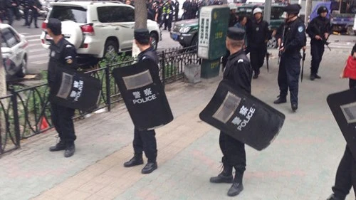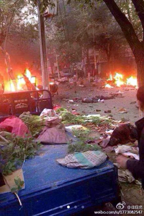 Hiện trường vụ nổ bom sáng nay tại Urumqi. Ảnh: Weibo