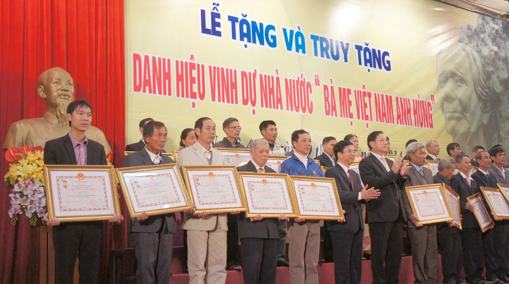 Trong đó, 48 mẹ đang còn sống đều đã trên 80 tuổi được trao tặng và 271 mẹ đã mất được truy tặng, thân nhân của 271 mẹ được truy tặng đón nhận Bằng danh hiệu vinh dự nhà nước “Bà mẹ Việt Nam Anh hùng”.